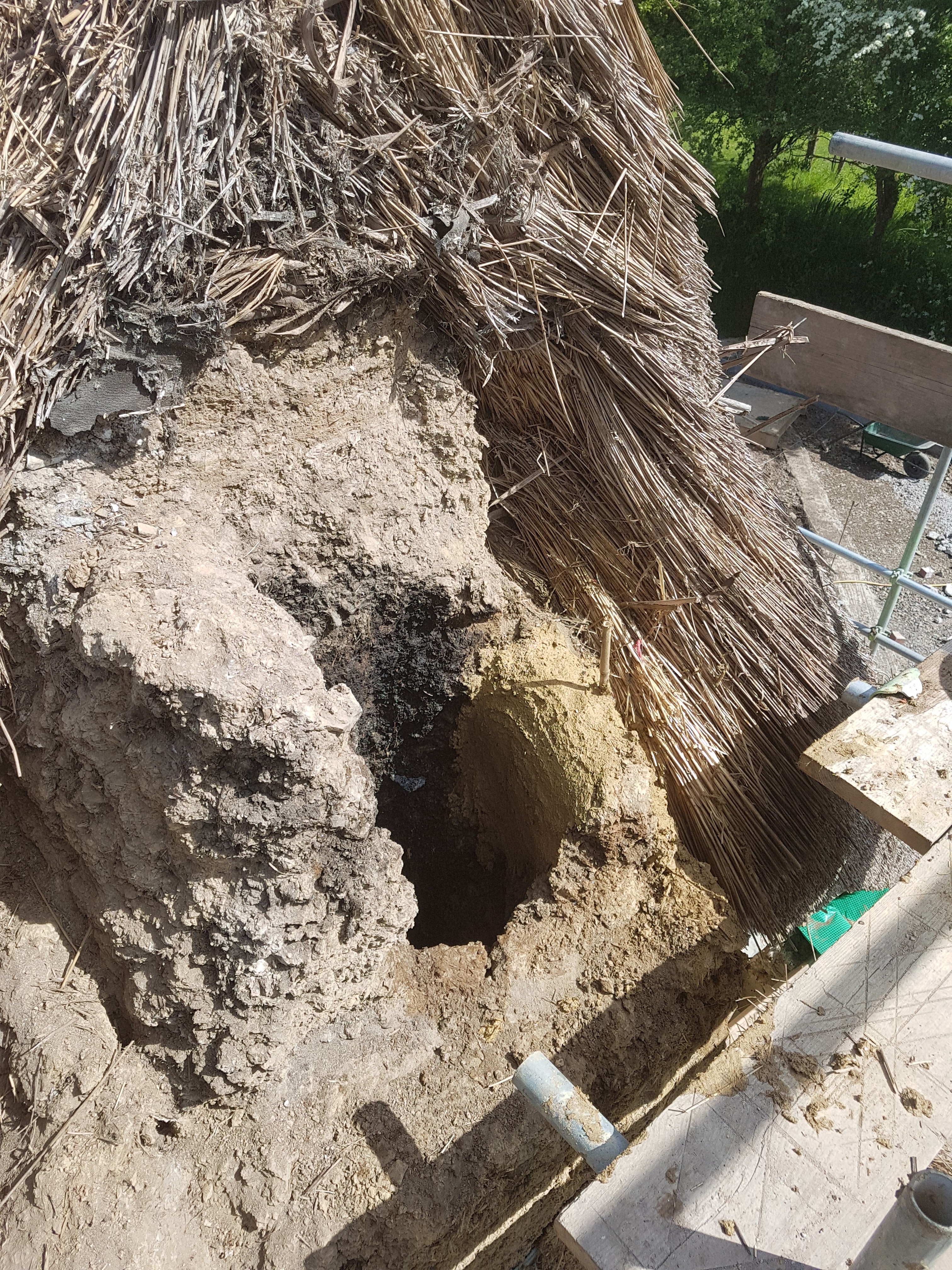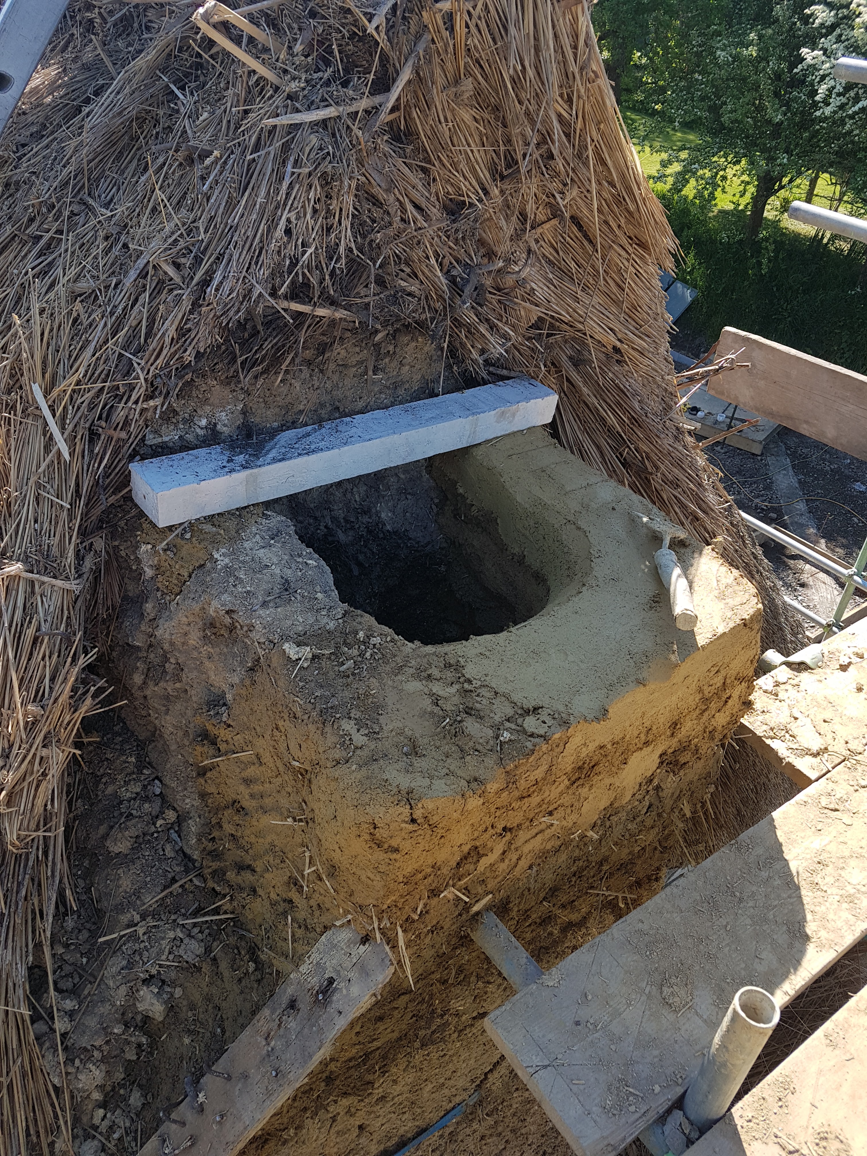 once the cob body of the gable had been repaired it was possible to repair he chimney top