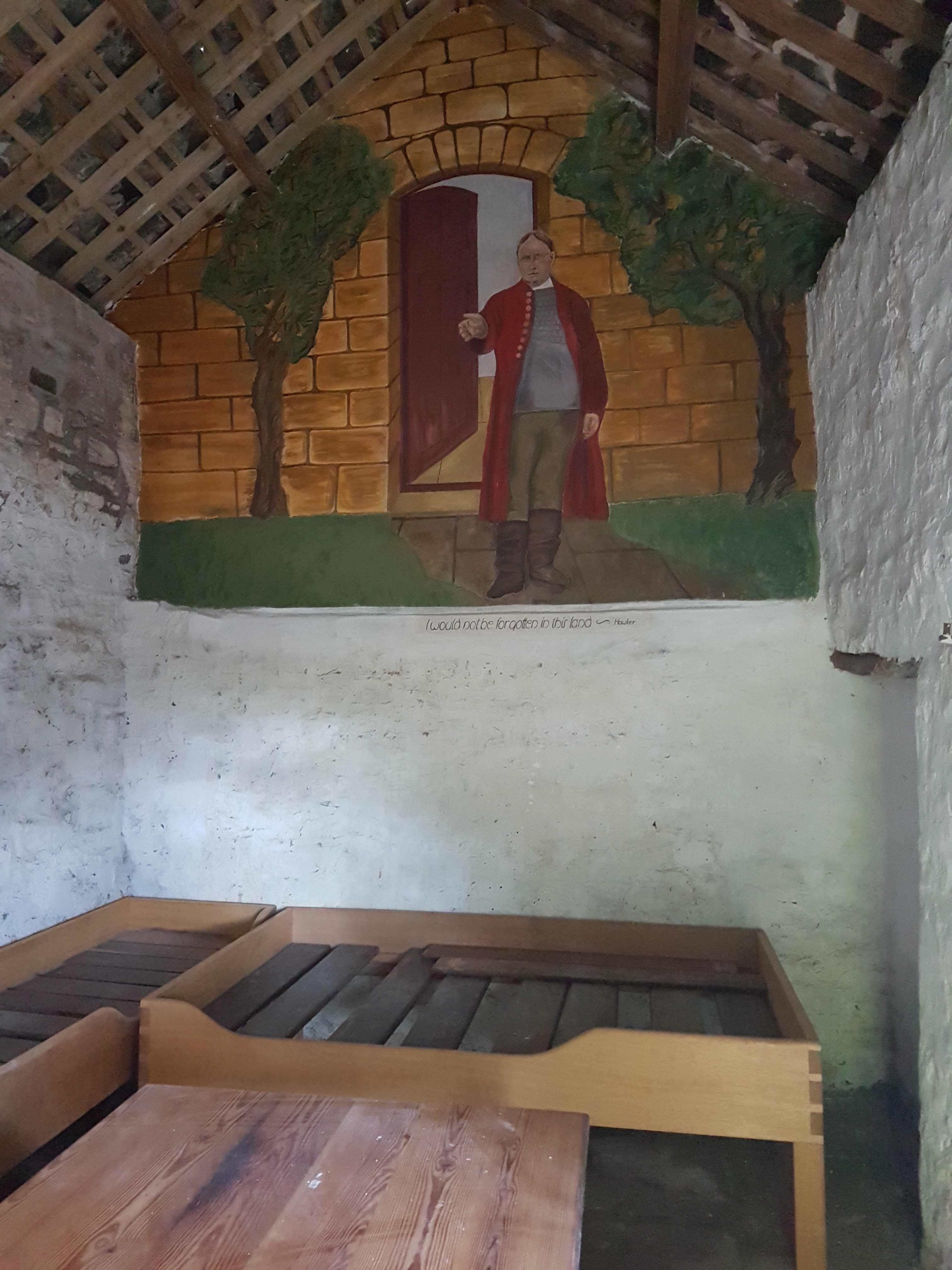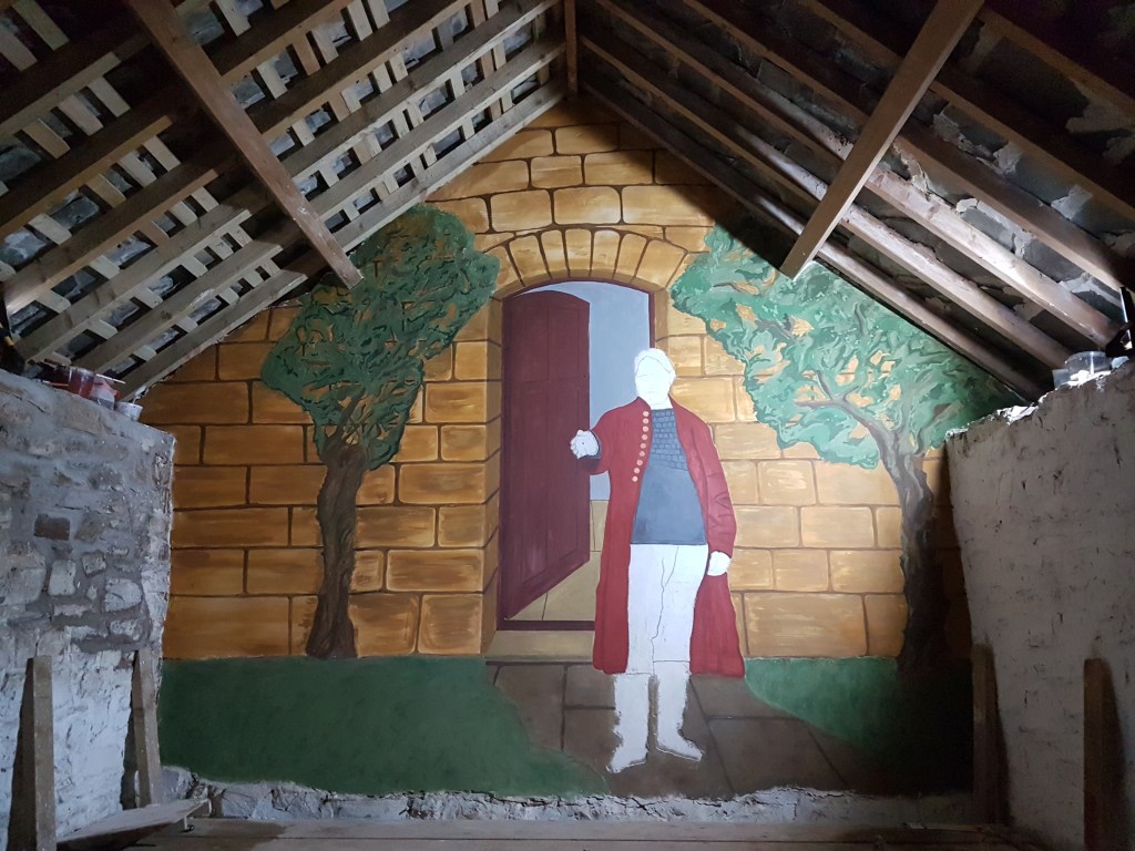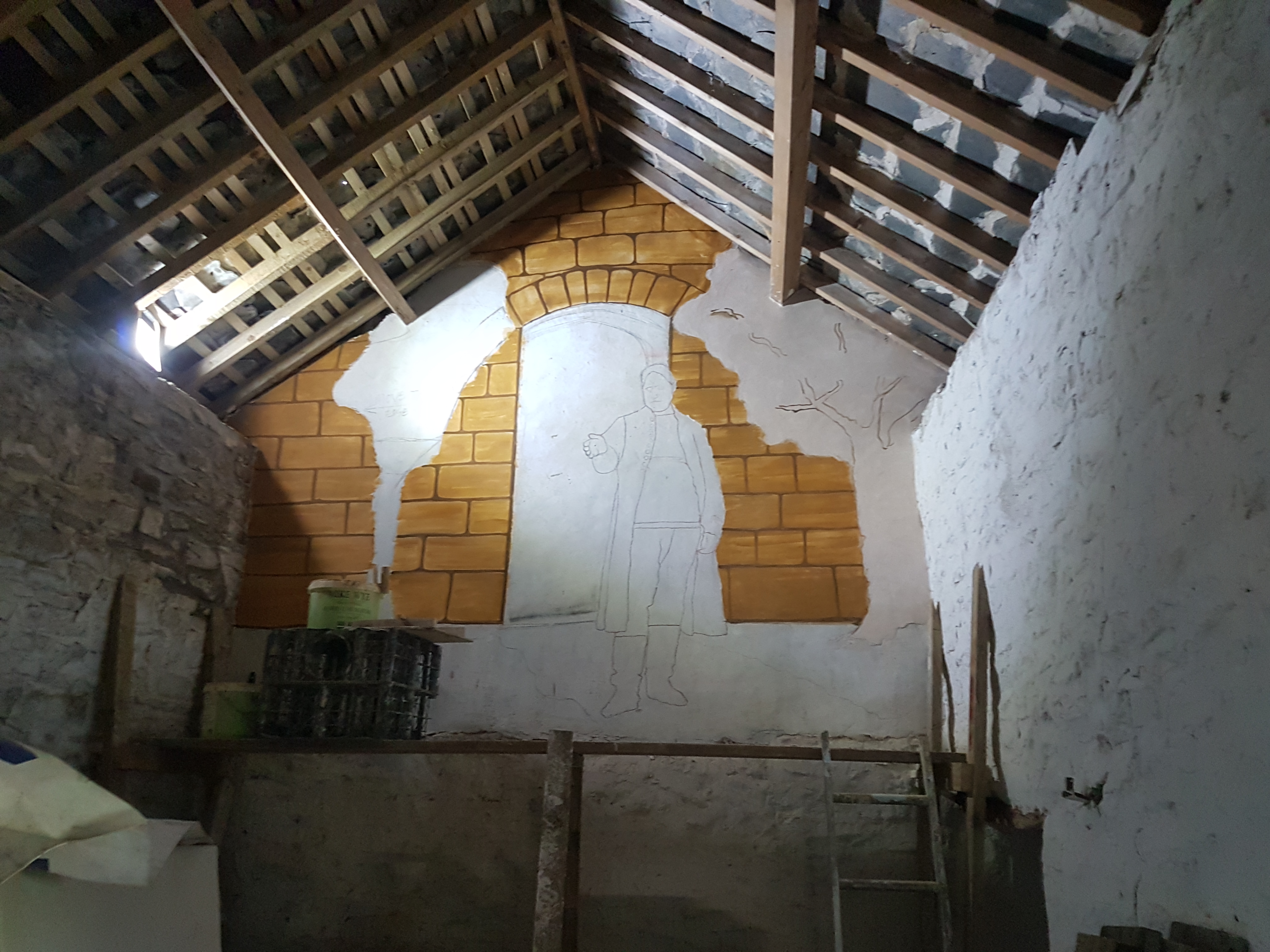 It is 150 years since Reverend Hawker died and so it was decided that in commemoration this small building being used simply as a store for old tools and other rubbish would be repaired and turned into a bothy for people walking the south west coast path. It was felt that a wall painting of the Reverend would add something to the space.