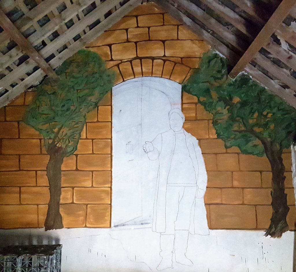 The painting is done as a fresco – I did both the plastering and the painting and the reverend is life size and is rather an imposing figure as you walk in to what is quite a small space.