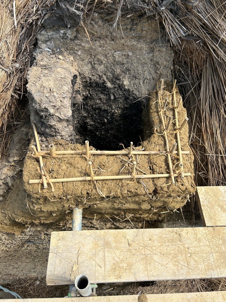 I rebuilt the cob surface using a bamboo armature and fresh cob then rendered it weather proof with three coats of lime render and four coats of limewash