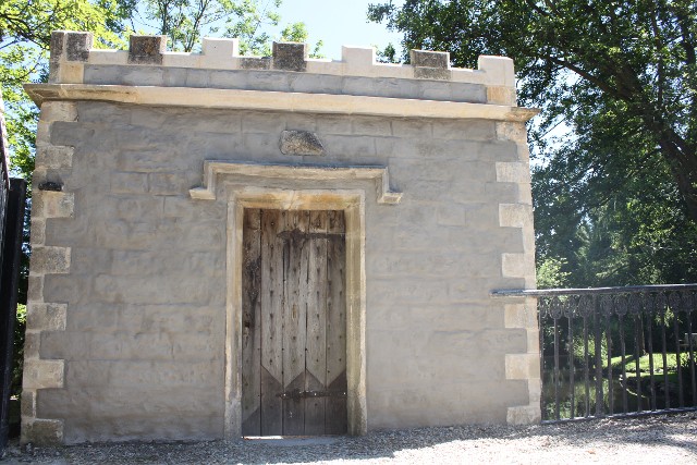 A one room building 4 metres x 4 metres built of Blue Lias limestone.
