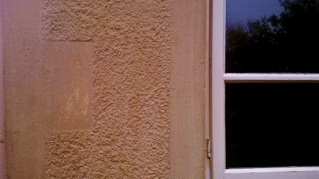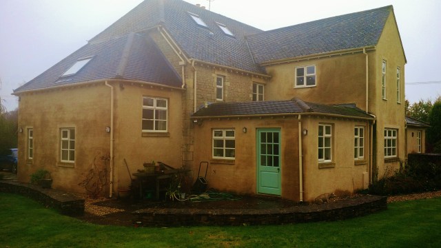 The render is almost prestine although it has got a bit grimy where water has been running down the wall from gutter overspill, and some of the lime wash has washed off from the most exposed elevation, but overall its great.