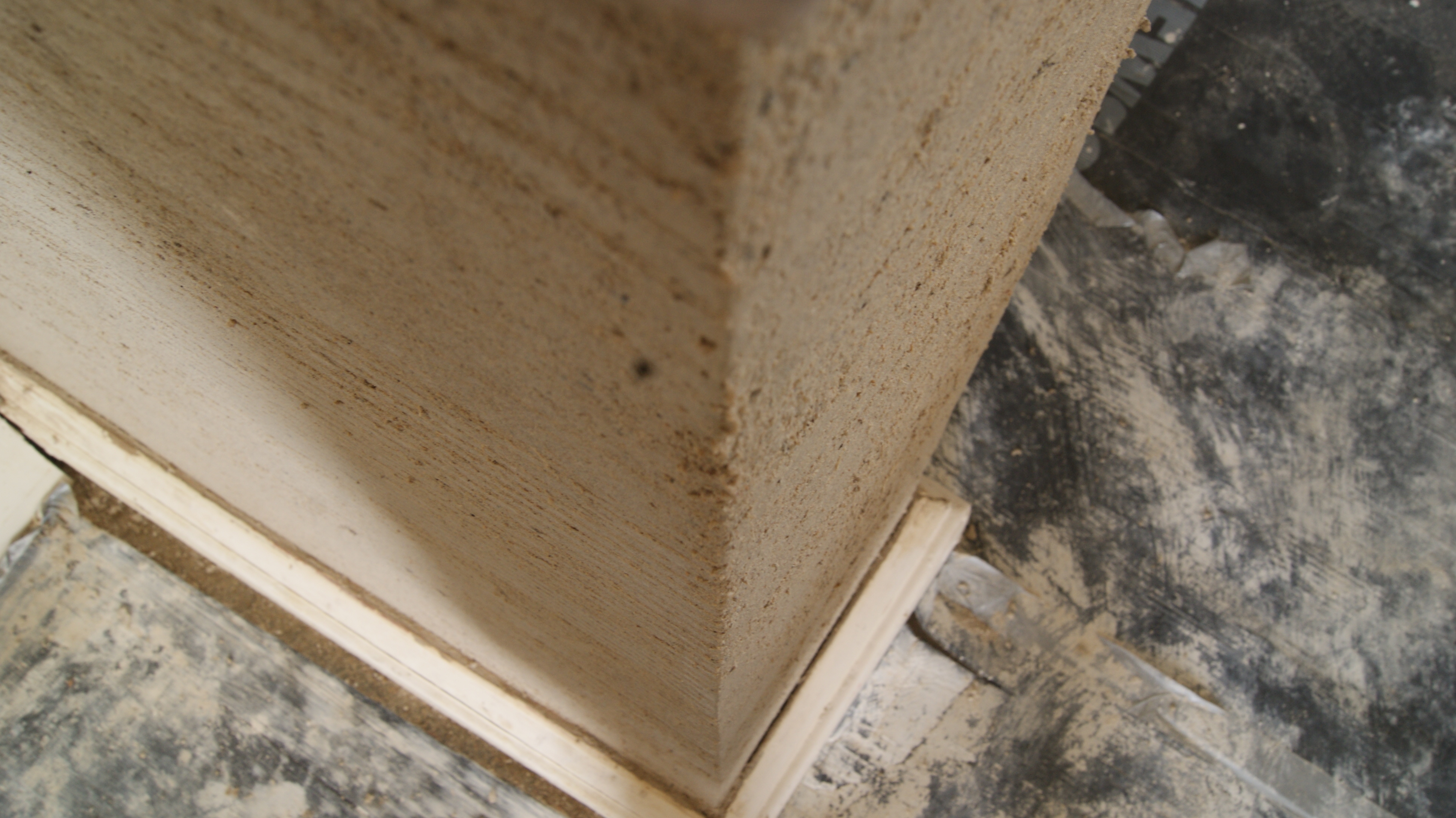 The next coat is now easy to apply, it is of even thickness, dries even and is easy to get flat. This second coat is brought up to within 4 mm of the final level and trowelled or floated flat, corners crisp or nicely rounded.